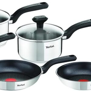 Tefal Comfort Max 5-Piece Stainless Steel Pots & Pan Set: Durable Cookware for Healthy Cooking, Induction Compatible, with Stay-Cool Ergonomic Handles. C972S544