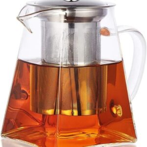 Pluiesoleil Borosilicate Glass Teapot, Loose Leaf Teapots with Infuser, Square Tea Pot with Strainer, Stovetop Microwave Safe Teapot for 2