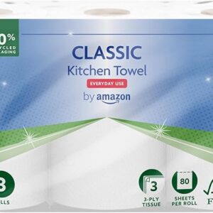 by Amazon Classic Kitchen Roll, 3-ply, Strong and Absorbent, 3 Rolls (1 Pack of 3), 80 Sheets per Roll, FSC Certified