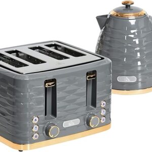 HOMCOM Kettle and Toaster Sets, 3000W 1.7L Rapid Boil Kettle & 4 Slice Toaster with 7 Browning Controls, Defrost, Reheat and Crumb Tray, UK Otter Thermostat, Grey
