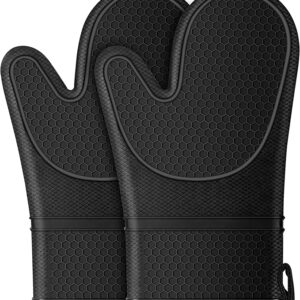 Oven Mitts,Anti-Slip Silicone Oven Gloves,Heat Resistant Gloves,Withstand 500 ℉,Black Double Oven Gloves for Kitchen Cooking,Dessert Making,BBQ